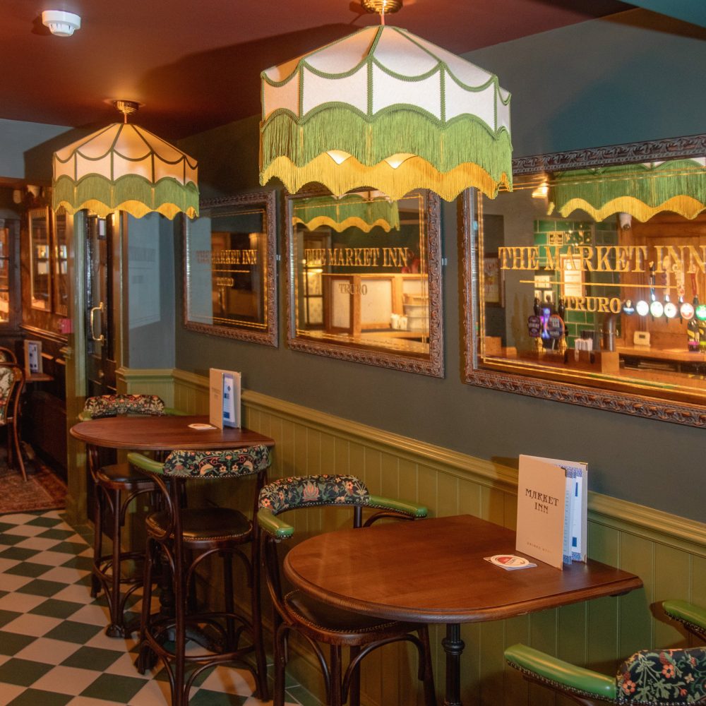 The Market Inn is a beautifully restored Grade II listed pub located in the heart of Truro. It blends historic charm with a warm and welcoming atmosphere, dating back to around 1900. Step inside to enjoy cosy seating, classic décor, and an impressive drinks selection – from craft beer, cask ale and handcrafted cocktails to soft drinks and fresh coffee. Located next to the Hall for Cornwall, this is the perfect location for a pre-theatre tipple before the show.